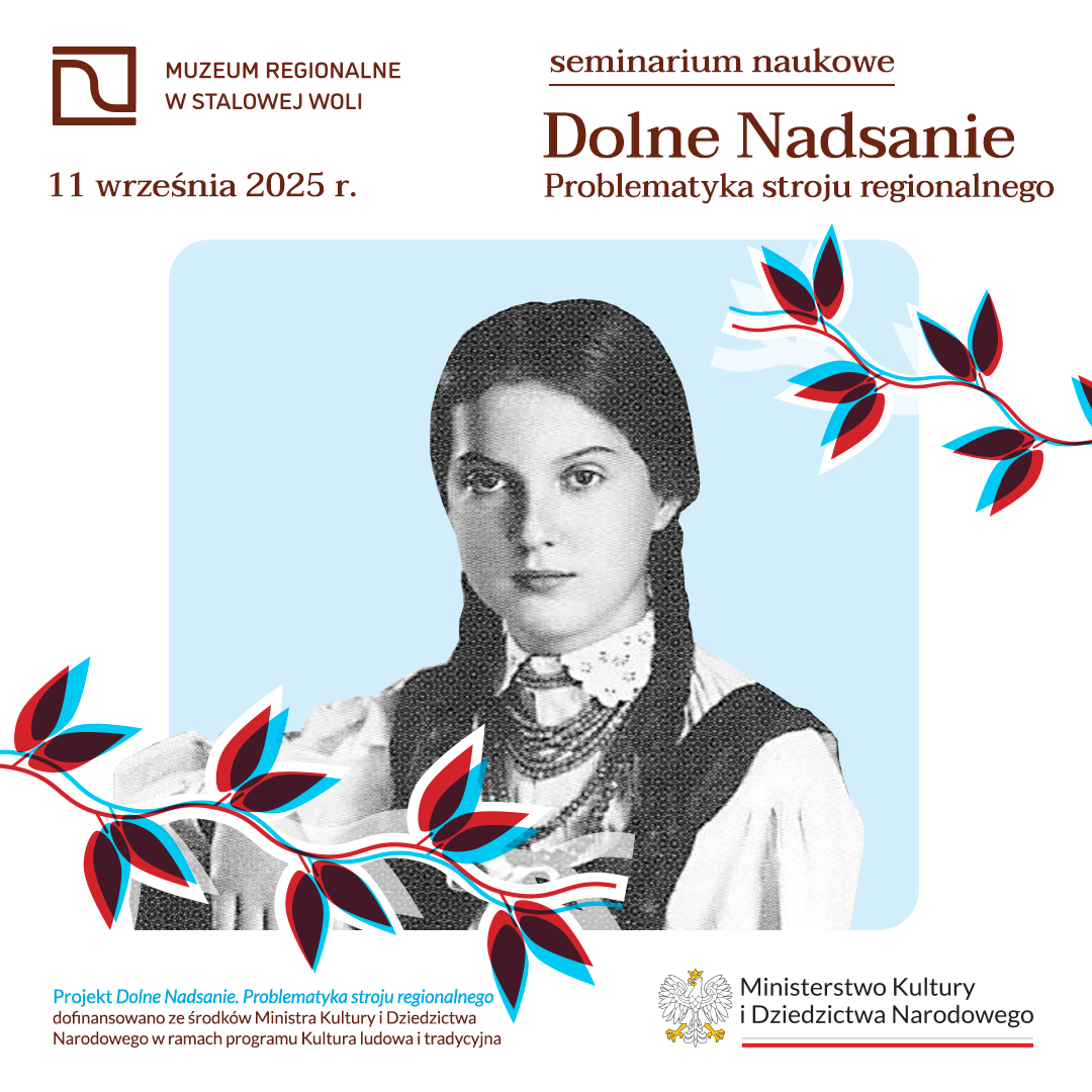 Muzeum Regionalne w Stalowej Woli zaprasza na seminarium naukowe pn. „Dolne Nadsanie. Problematyka stroju regionalnego”, które odbędzie się 11 września 2025 r. w siedzibie głównej Muzeum Regionalnego w Stalowej Woli przy ulicy Sandomierskiej 1. Celem wydarzenia jest zwrócenie uwagi na specyfikę dziedzictwa kulturowego Dolnego Nadsania, obszaru obejmującego miejscowości leżące po obu stronach rzeki San, w jej dolnym biegu, na obszarze dawnej Puszczy Sandomierskiej (region lasowiacki).