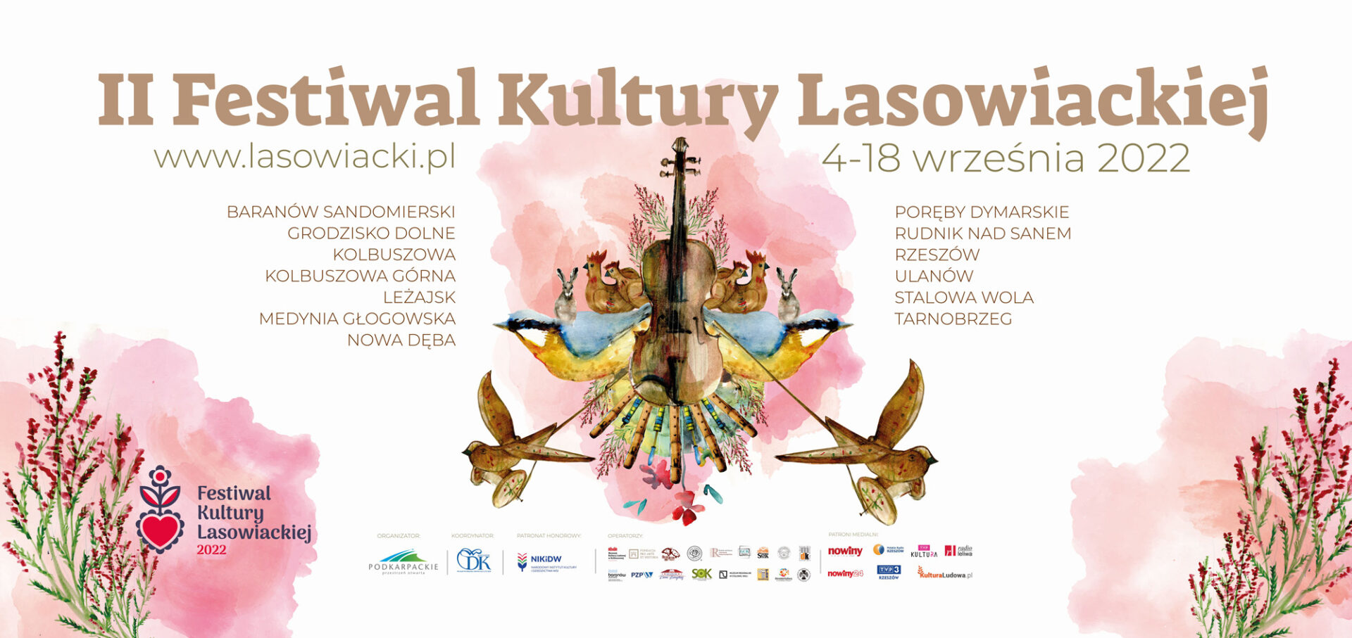 Województwo Podkarpackie zaprasza na święto kultury Lasowiaków, czyli drugą edycję Festiwalu Kultury Lasowiackiej. Wydarzenia festiwalowe odbywać się będą od 4 do 18 września 2022 roku, głównie w weekendy, a ich najważniejszym celem jest prezentacja dorobku kultury Lasowiaków i promocja jej unikatowego charakteru.