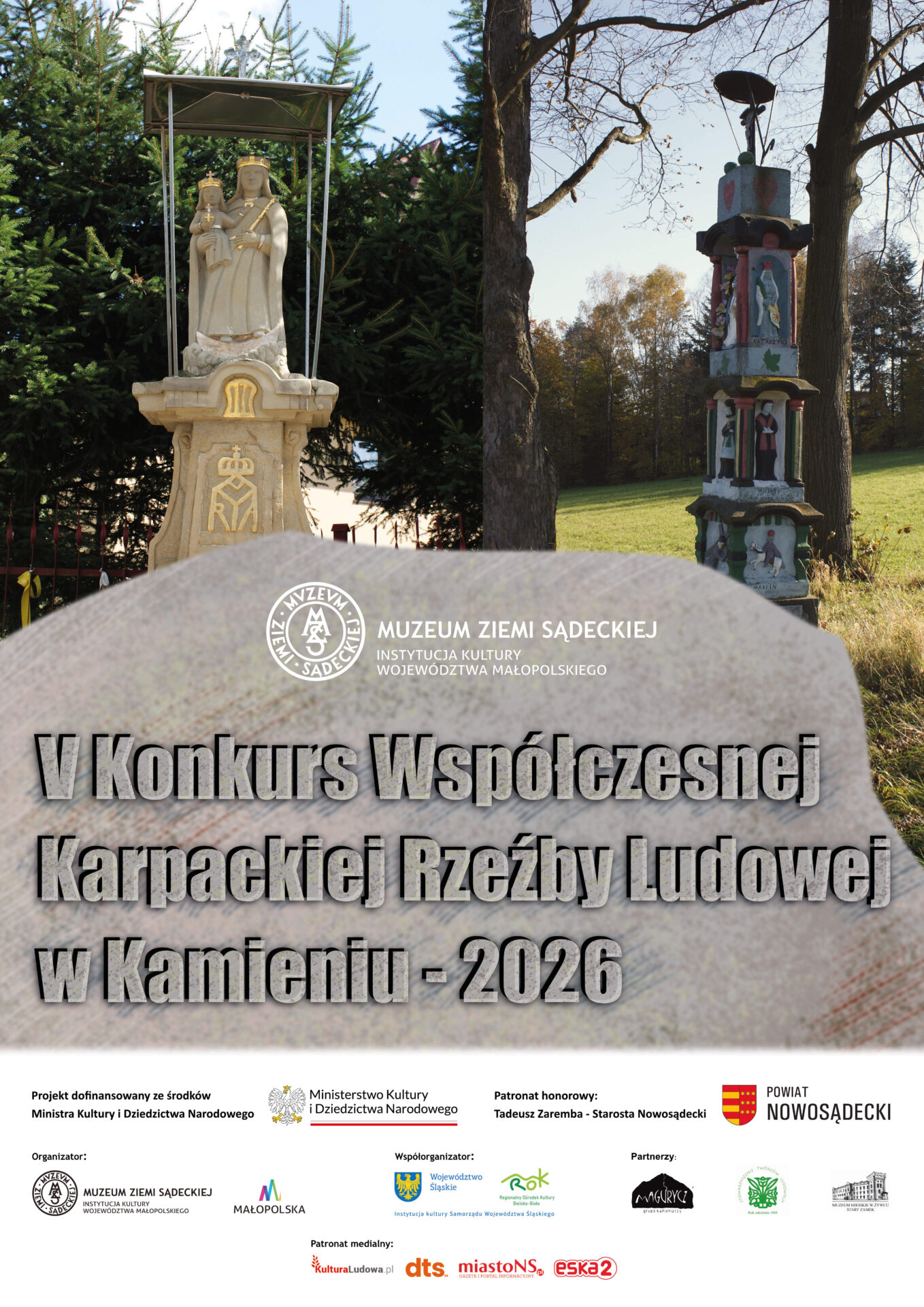 Rusza V edycja ogólnopolskiego konkursu „Współczesna Karpacka Rzeźba Ludowa w Kamieniu”, organizowanego przez Muzeum Ziemi Sądeckiej. To jedno z najważniejszych wydarzeń promujących rzeźbę ludową w kamieniu w regionie Karpat. Zgłoszenia do konkursu przyjmowane są do 1 czerwca 2026 roku. Patronem medialnym wydarzenia jest portal KulturaLudowa.pl.