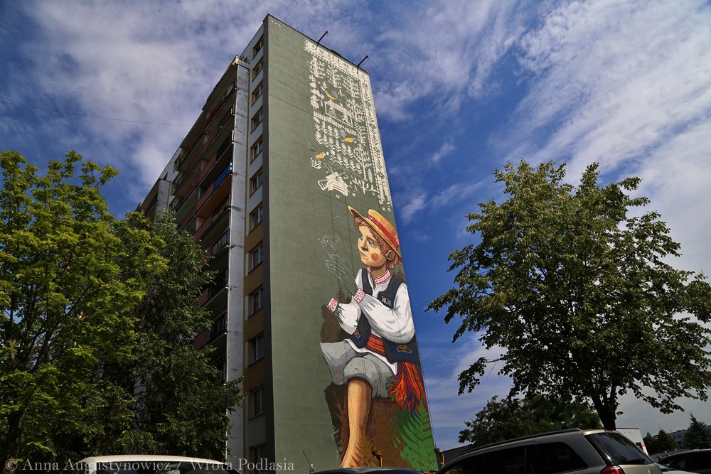 Największy w Polsce mural inspirowany kulturą ludową pojawił się dziś, 11 lipca na wieżowcu przy ul. Radzymińskiej 18 w Białymstoku. To kolejne działanie w ramach prowadzonej przez WOAK akcji Folk on the Street. Poinformował o tym na dzisiejszej konferencji prasowej dyrektor Wojewódzkiego Ośrodka Animacji Kultury w Białymstoku Cezary Mielko.