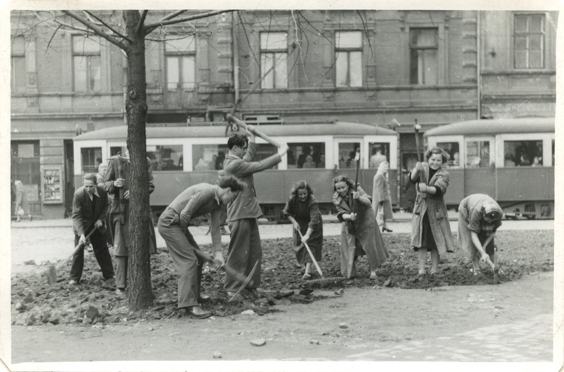 * Zdjęcie na górze: Kwiecień 1955 r. – zespół MEK przygotowuję ziemię pod zasiew trawnika przed gmachem Muzeum, fot. Archiwum Muzeum Etnograficzne w Krakowie