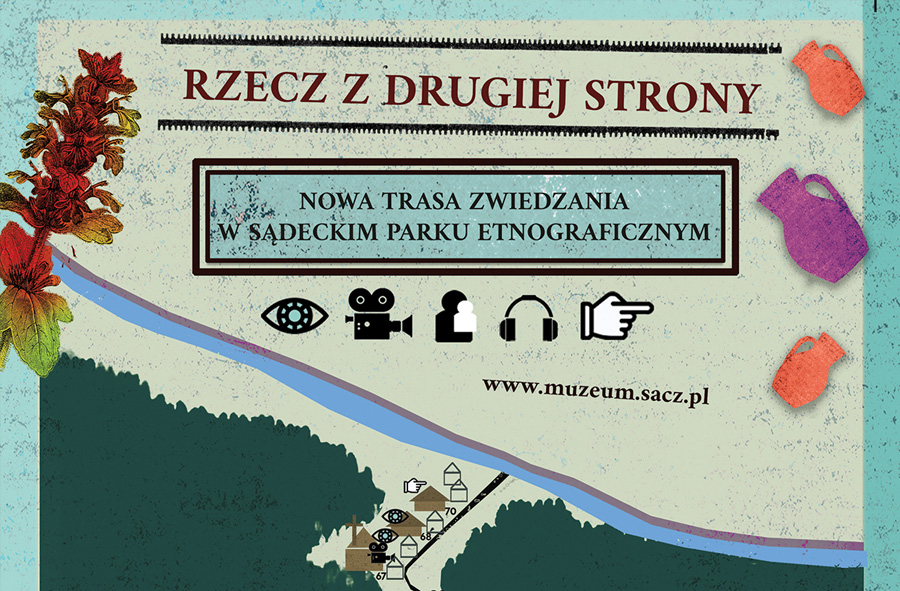 Celem projektu „Rzecz z drugiej strony – nowa trasa zwiedzania w Sądeckim Parku Etnograficznym” jest modernizacja wystawy sądeckiego skansenu, poprzez wprowadzenie nowej trasy zwiedzania, „nadbudowanej” na dotychczasowej stałej ekspozycji. Trasa zakłada odwrócenie perspektywy zwiedzania – wyjście od szczegółu, czyli eksponatu (rzeczy), który będąc częścią stałej wystawy zawiera szereg treści, mogących jednak łatwo umknąć uwadze zwiedzającego.