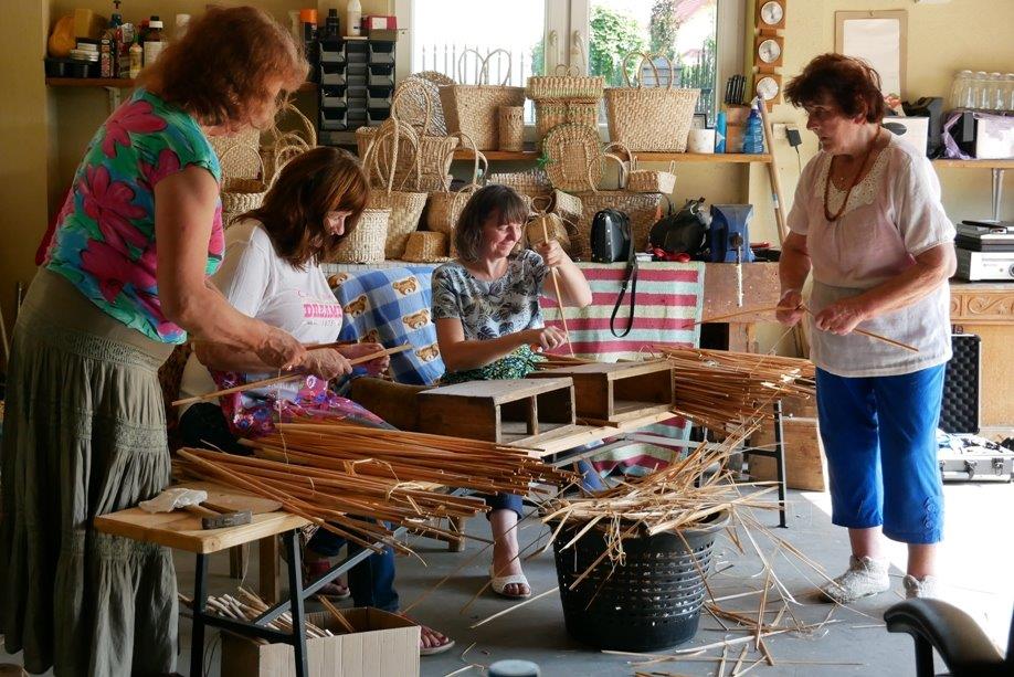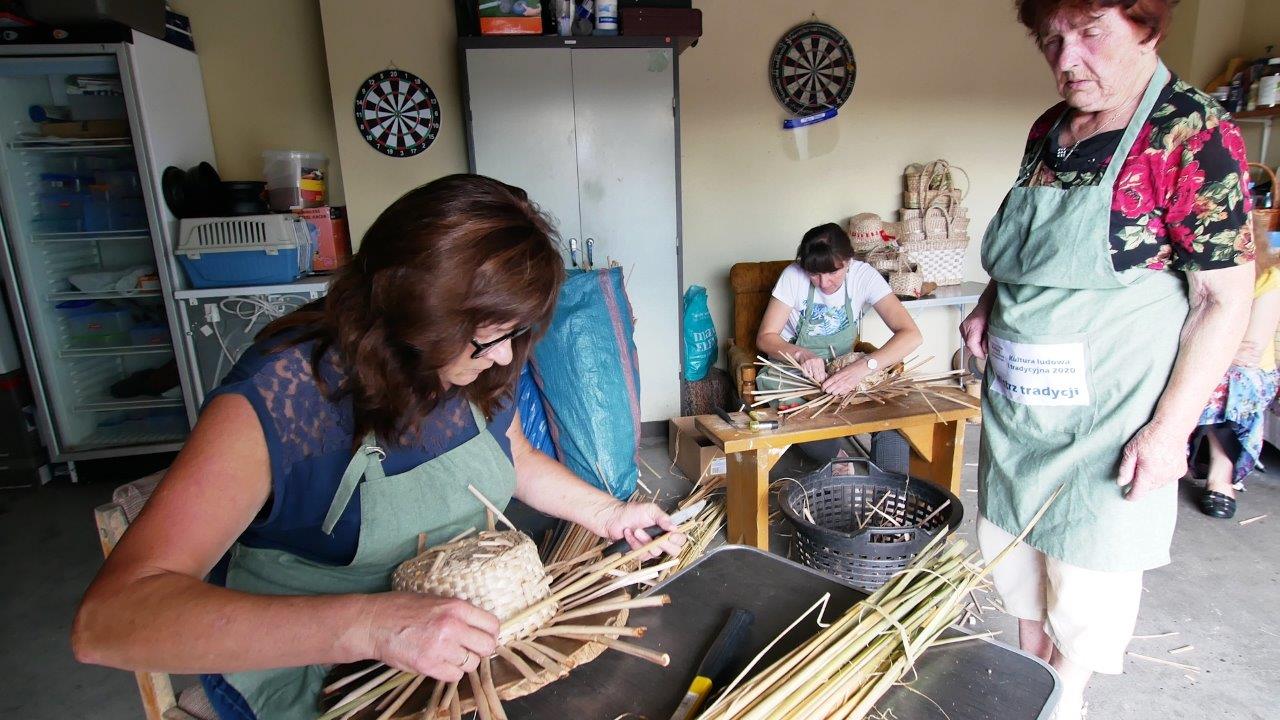 Uczennice: Barbara Kapusta i Bożena Wieleba w trakcie 128 godzin warsztatów, poznawały od podstaw tajniki rzemiosła; pozyskiwanie, przygotowanie i sortowanie rogożyny, nauka podstawowych splotów, wyplatanie prostych wyrobów (podstawki, tacki) oraz wyplatanie zaawansowanych wzorów z użyciem form (koszyki, kapelusze).