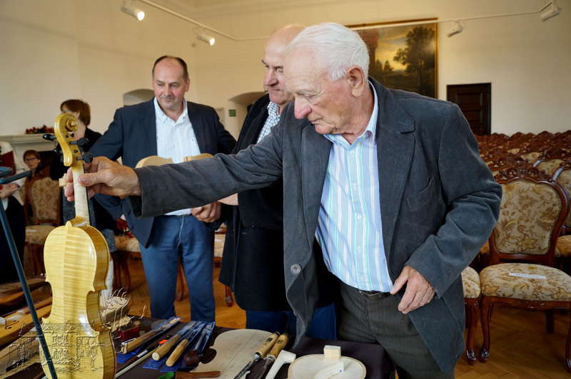 Na spotkanie podsumowujące Warsztaty budowy skrzypiec ludowych przybyli również Maria Michajłow – Dyrektor Zespołu Szkół im. Korpusu Ochrony Pogranicza, Sławomir Drabik – Dyrektor Centrum Kształcenia Zawodowego i Ustawicznego oraz nauczyciele klas stolarskich Arkadiusz Tarka i Bolesław Cender oraz inni zainteresowani uczniowie wraz ze swoimi opiekunami z ZS im. KOP w Szydłowcu.