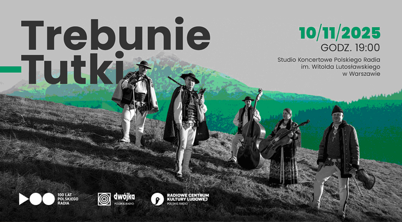 W poniedziałek, 10 listopada o godz. 19.00, w Studiu Koncertowym Polskiego Radia im. Witolda Lutosławskiego odbędzie się wyjątkowy koncert zespołu Trebunie-Tutki. Artyści zaprezentują autorskie i premierowe utwory poświęcone ludziom gór i fenomenowi Tatr. W programie nie zabraknie charakterystycznych góralskich brzmień, wzbogaconych o cymbały węgierskie, altówkę siedmiogrodzką i kontrabas. Transmisja wydarzenia na antenie radiowej Dwójki i w wersji wideo na kanale YouTube stacji.