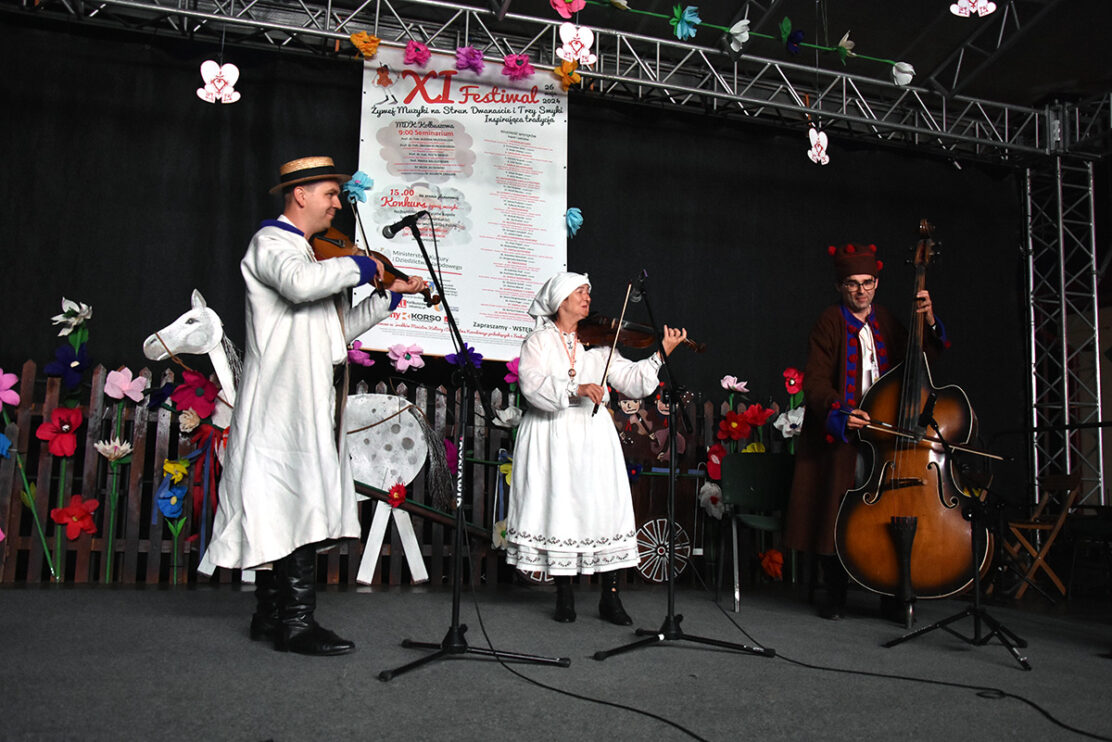 Festiwal znakomicie poprowadził Jan Pospieszalski, który na zakończenie wydarzenia, w oczekiwaniu na werdykt jury, wspólnie muzykował na scenie z ludowymi muzykantami.