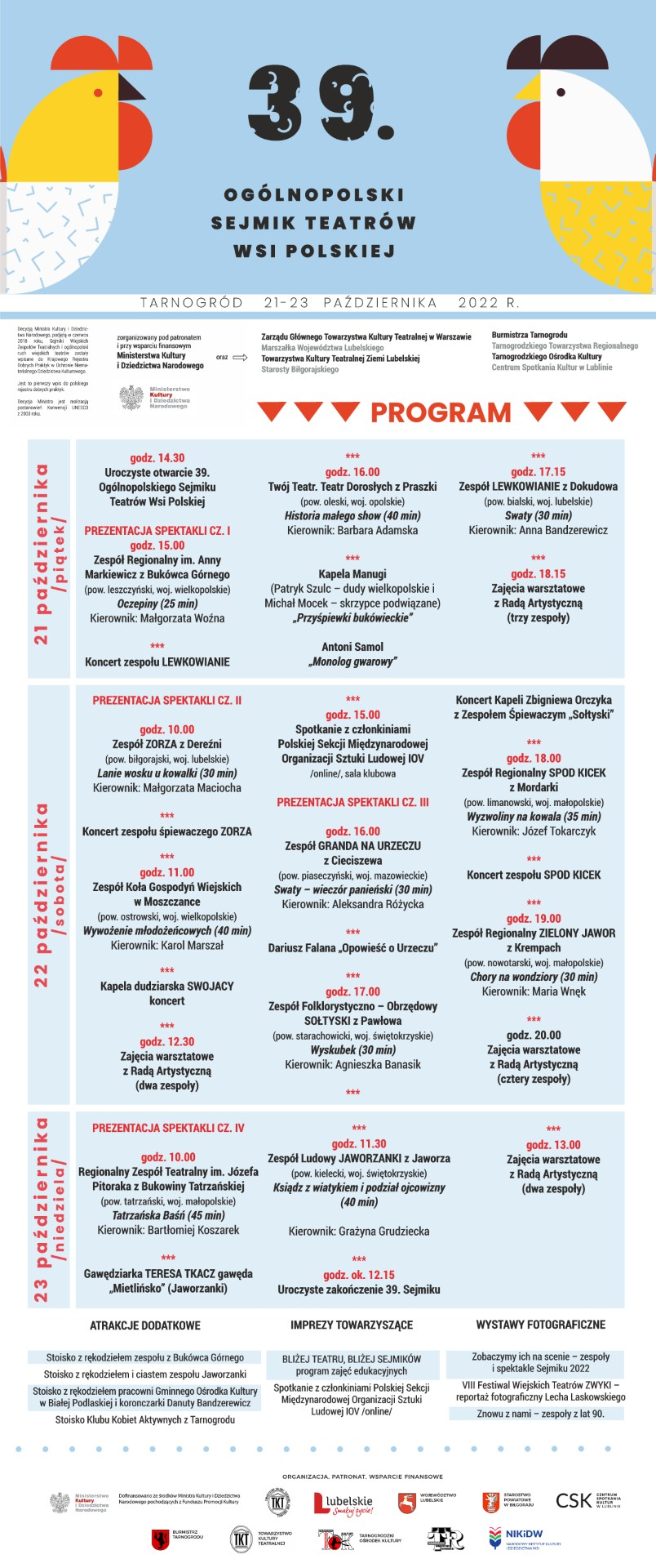 W dniach 21-23 października, w Tarnogrodzie odbędzie się 39. edycja Ogólnopolskiego Sejmiku Teatrów Wsi Polskiej.
