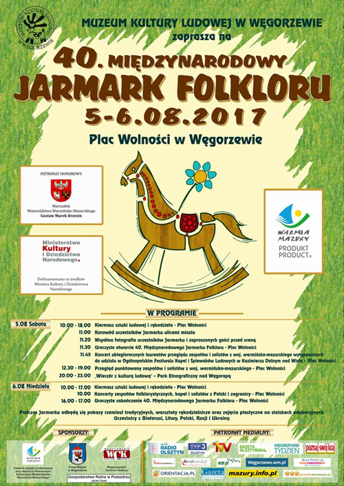 Tradycyjnie, w pierwszą sobotę i niedzielę sierpnia, na węgorzewskim Placu Wolności odbędzie się Międzynarodowy Jarmark Folkloru.