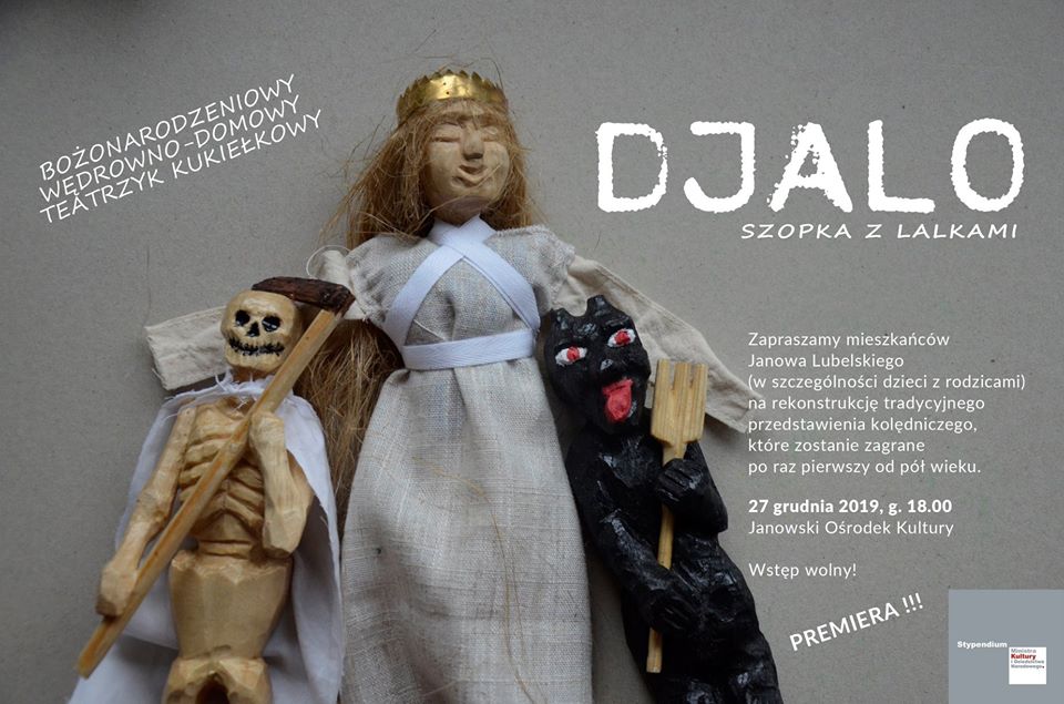 W 2019 roku na podstawie materiałów archiwalnych oraz wspomnień i rozmów z najstarszymi mieszkańcami Janowa Lubelskiego wraz ze stryjkiem i z pomocą pozostałych członków rodziny, podjąłem się próby rekonstrukcji tej wyjątkowej i unikalnej dziś formy kolędowania. Oprócz warstwy słowno-muzycznej odtworzone zostały również rekwizyty (m.in. szopka, figurki – lalki). Dlaczego Djalo? Djalo to „janowska” wersja Herodów, których fragmenty wykorzystywane były w kolędowaniu z szopką.