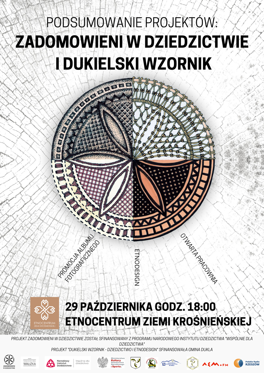 29 października w Etnocentrum Ziemi Krośnieńskiej odbędzie się spotkanie podsumowujące projekty „Dukielski Wzornik” i „Zadomowieni w dziedzictwie”, zrealizowanych w tym roku przez Fundację na Rzecz Kultury „Walizka”.