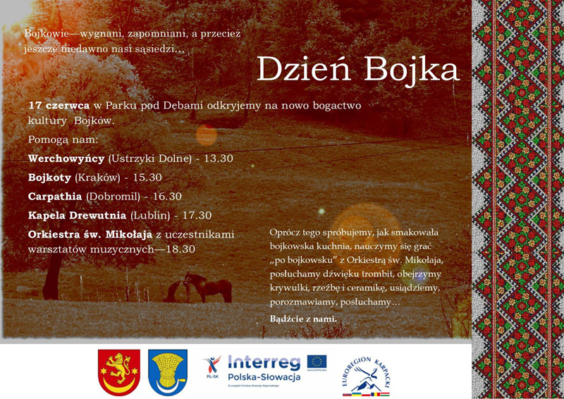 Starostwo Powiatowe w Ustrzykach Dolnych zaprasza 17 czerwca na Dzień Bojka w Ustrzykach Dolnych – imprezę kulturalną organizowaną w ramach projektu „Wołanie przestrzeni – o nieistniejącej krainie”.