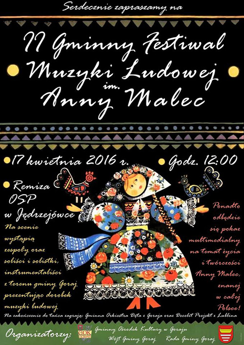 Gminny Ośrodek Kultury w Goraju zaprasza na II Gminny Festiwal Muzyki Ludowej im. Anny Malec