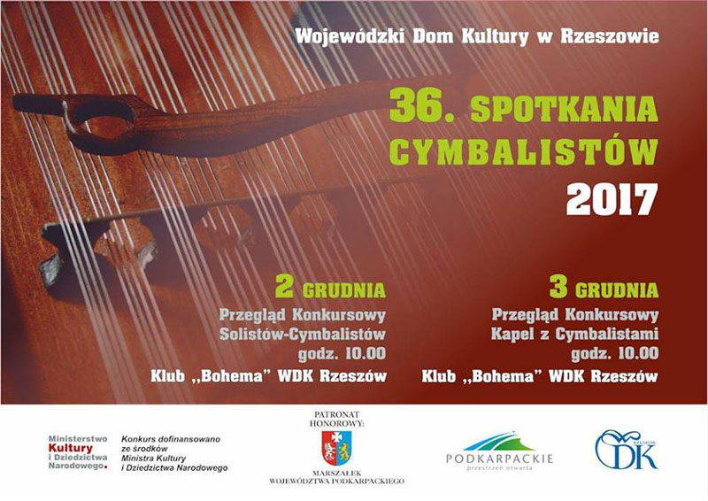 Wojewódzki Dom Kultury w Rzeszowie zaprasza na 36. Spotkania Cymbalistów, które odbędą się w dniach 2–3 grudnia.
