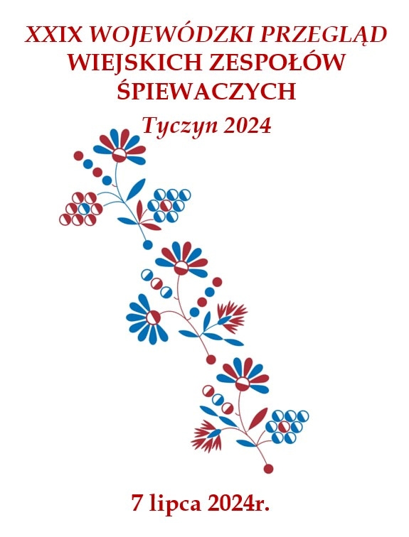 Miejsko-Gminny Ośrodek Kultury im. Katarzyny Sobczyk w Tyczynie zaprasza 7 lipca 2024 r. na XXIX Wojewódzki Przegląd Wiejskich Zespołów Śpiewaczych.