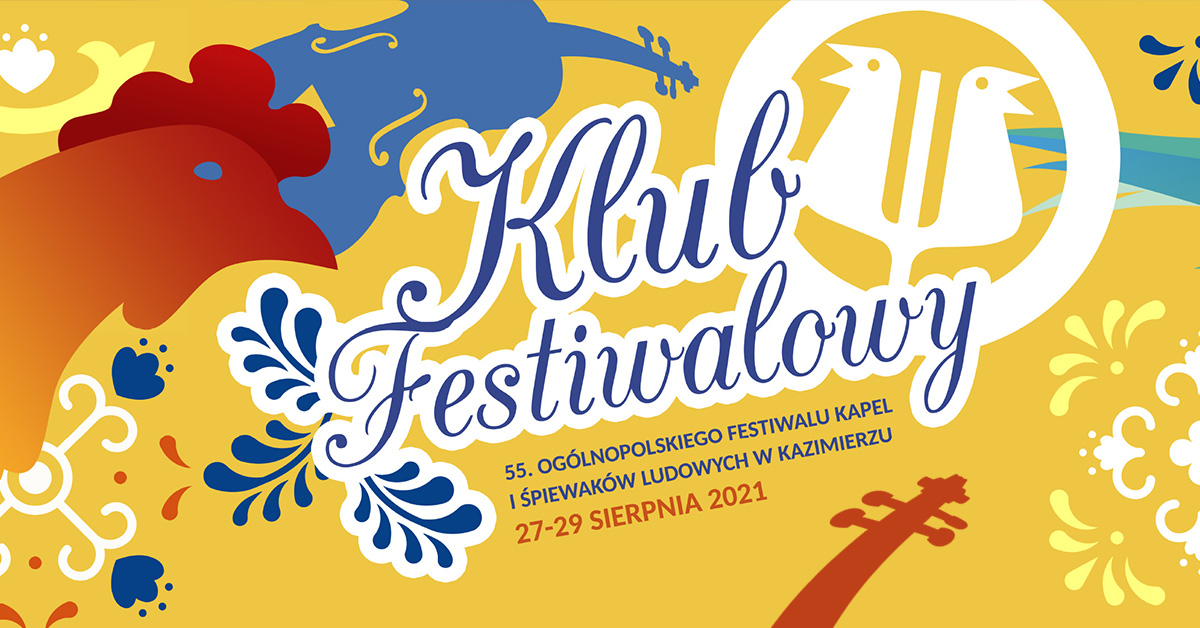 Po ubiegłorocznej przerwie spowodowanej pandemią, w ramach Ogólnopolskiego Festiwalu Kapel i Śpiewaków Ludowych w Kazimierzu wraca Klub Festiwalowy w namiocie. W tym roku w programie m.in. Akademia Sztuki Ludowej czyli warsztaty rękodzielnicze dla dużych i małych, spotkania, warsztaty tańca, kameralne koncerty oraz oczywiście zabawa taneczna z udziałem festiwalowych kapel i zaproszonych gości. |