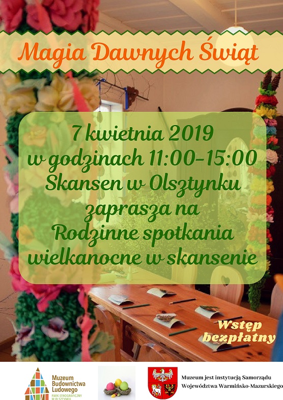7 kwietnia w olsztyneckim Parku Etnograficznym odbędzie się impreza: „Magia dawnych świąt. Rodzinne spotkania wielkanocne w skansenie”. Będzie to wyjątkowe przedświąteczne wydarzenie w zabytkowej chałupie wśród wielu wielkanocnych ozdób i akcentów oraz zapachu tradycyjnych świątecznych wypieków. Organizatorzy będą snuć etnograficzne opowieści jak to dawnymi czasy na mazurskiej i warmińskiej wsi w święta bywało.