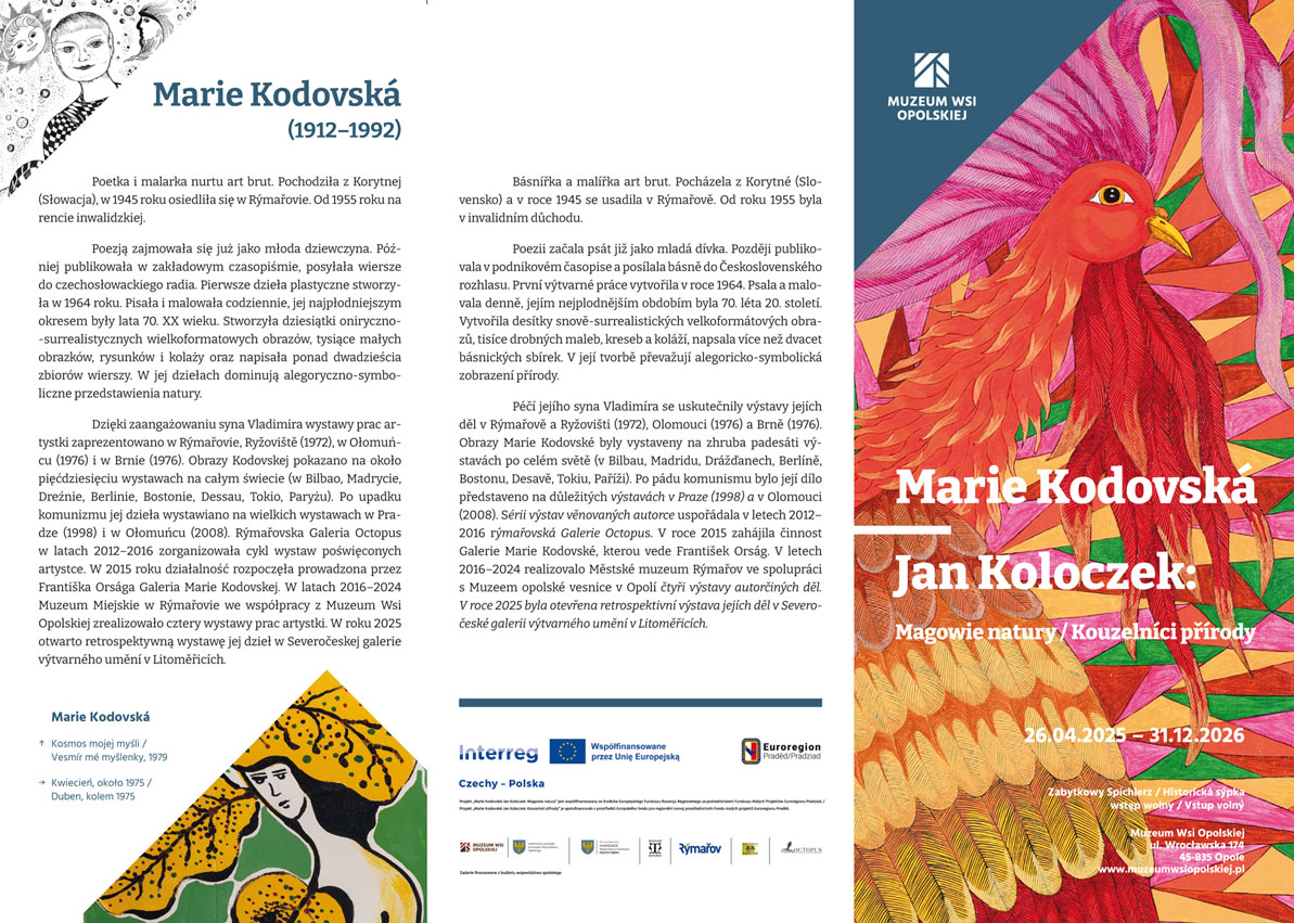 Muzeum Wsi Opolskiej w Opolu i Mestské Muzeum v Rýmařove zapraszają na wystawę dwojga niepowtarzalnych artystów: surrealistyczno-onirycznej Marie Kodovskiej i skrzydlatego wolnomyśliciela Jana Koloczka.
