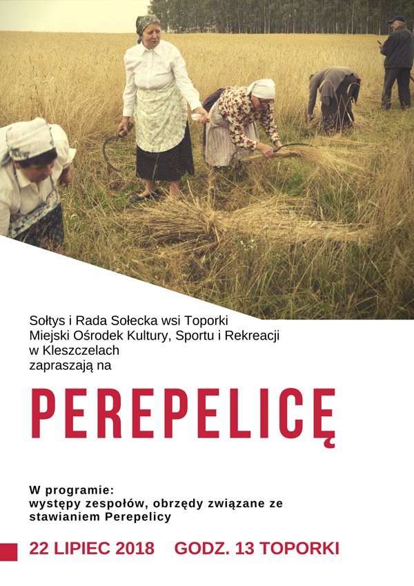 Miejski Ośrodek Kultury, Sportu i Rekreacji w Kleszczelach we współpracy z Radą sołecką wsi Toporki zaprasza do współuczestniczenia w wydarzeniu PEREPELICA, które odbędzie się 22 lipca o godz. 13 w TOPORKACH /gm. Kleszczele/.