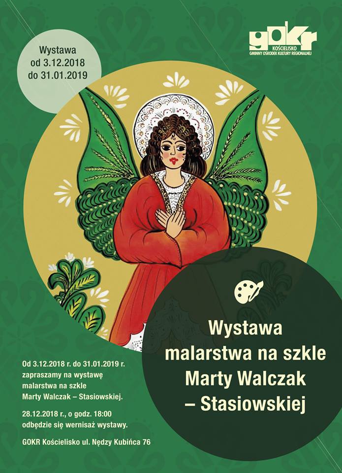 Gminny Ośrodek Kultury Regionalnej w Kościelisku zaprasza na wystawę malarstwa na szkle Marty Walczak Stasiowskiej. |