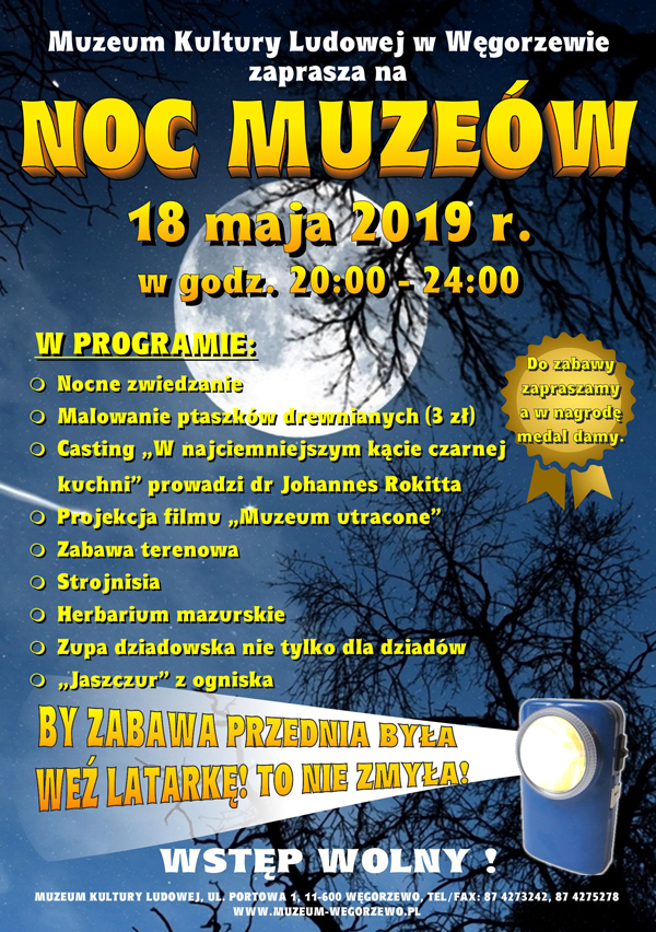 Muzeum Kultury Ludowej w Węgorzewie serdecznie zaprasza na Noc Muzeów, która odbędzie się w nocy 18 maja 2019 r. w godz. 20.00 - 24.00.