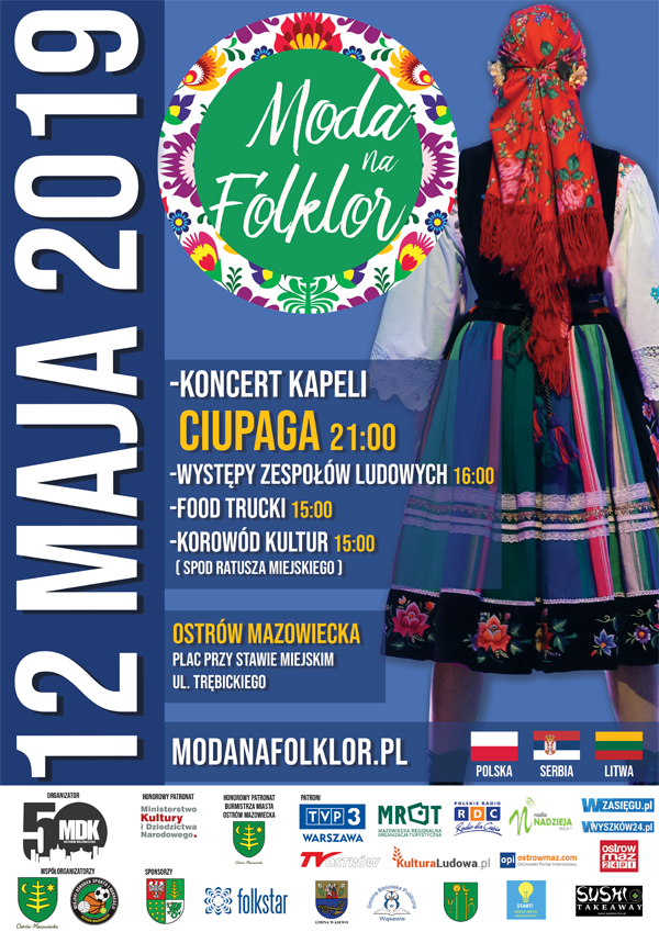 Festiwal Moda na folklor to nie tylko występy na scenie poszczególnych zespołów, które prezentują przygotowane przez siebie programy. Festiwal odbędzie się 12 maja 2019 w Ostrowi Mazowieckiej. |