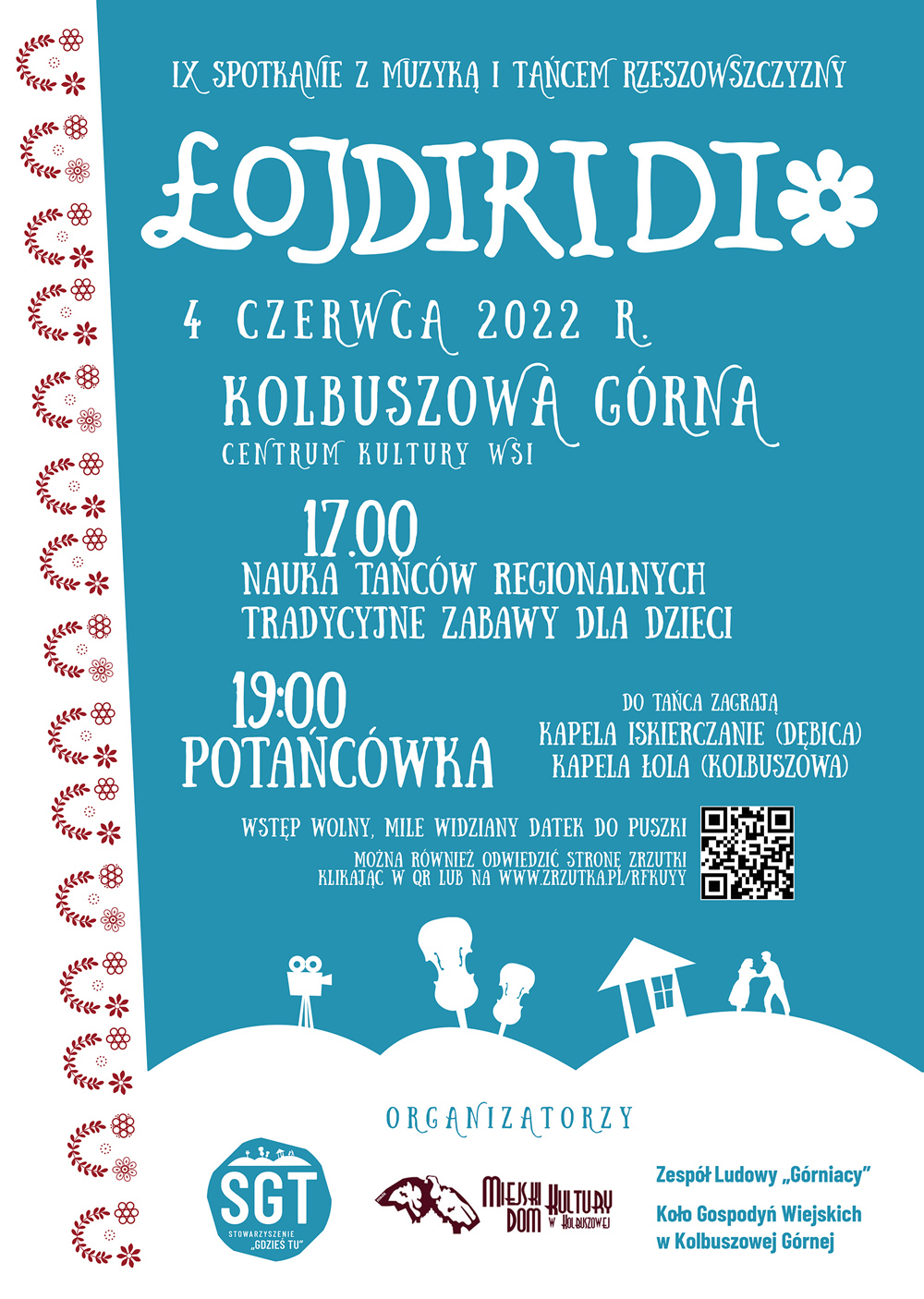 Po niemal 2,5-letniej przerwie wracają organizowane przez Stowarzyszenie “Gdzieś Tu” Spotkania z muzyką i tańcem Rzeszowszczyzny “Łojdiridi”. Spotkamy się w Kolbuszowej Górnej 4 czerwca 2022 r. |
