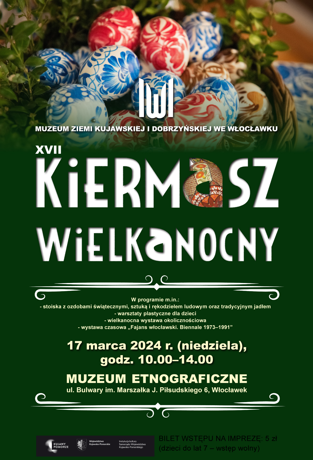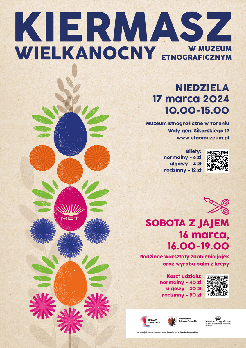 W niedzielę 17 marca br., w godzinach od 10.00 do 14.00, w Muzeum Etnograficznym we Włocławku przy ul. Bulwary im. Marszałka Józefa Piłsudskiego 6 odbędzie się XVII kiermasz wielkanocny.