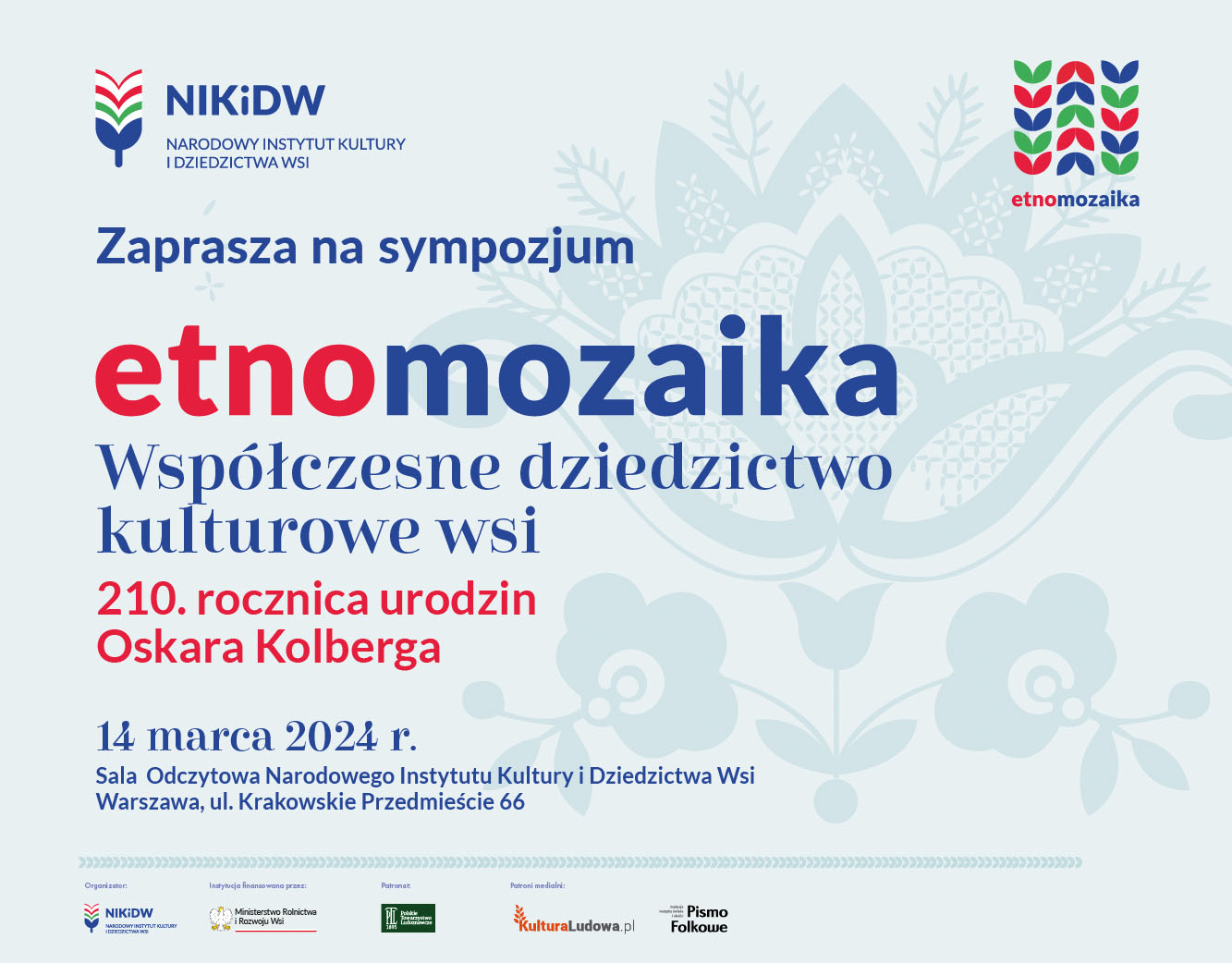 Narodowy Instytut Kultury i Dziedzictwa Wsi zaprasza do udziału w Sympozjum "Etnomozaika. Współczesne dziedzictwo kulturowe wsi". Etnomozaika to projekt naukowy nawiązujący do "Dzieł Wszystkich" Oskara Kolberga. Głównym założeniem tego działania badawczego jest rejestracja współczesnej kultury ludowej i tradycyjnej przełomu XX i XXI wieku. |