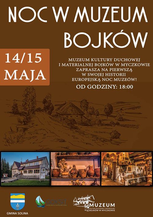 Muzeum Kultury Duchowej i Materialnej Bojków w Myczkowie zaprasza na swoją pierwszą Noc Muzeów, 14/15 maja br. Wszyscy ciekawi bojkowskiej kultury będą mogli przekonać się, jak wyglądała bojkowska codzienność oraz zwyczaje tej wciąż niedostatecznie poznanej grupy etnicznej.