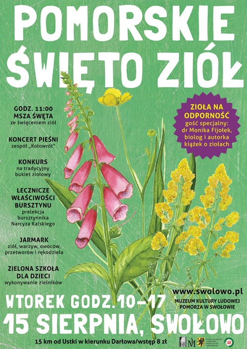Muzeum Kultury Pomorza w Swołowie zaprasza na V Pomorskie Święto Ziół. Impreza folklorystyczna z okazji święta Matki Bożej Zielnej odbędzie się we wtorek, 15 sierpnia 2017 r., w godz. 10-17 na terenie Zagrody Albrechta.
