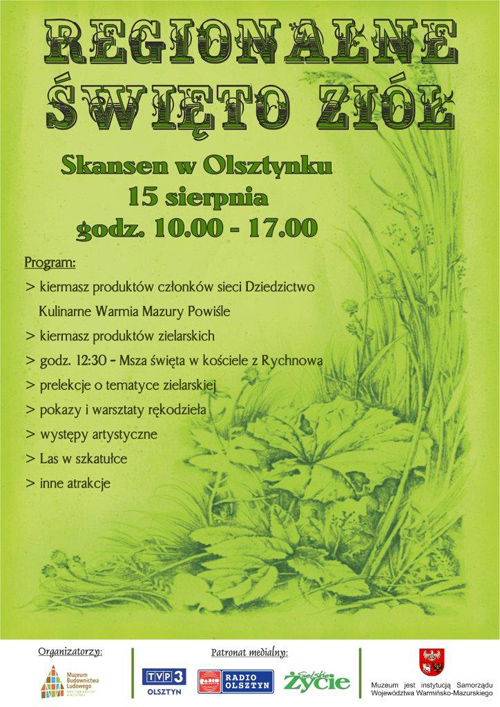 Wszechobecny aromat świeżych ziół, degustacje ziołowych naparów i herbat, bajkowe spotkania z ziołami, święcenie wianków oraz kiermasz produktów regionalnych, a na scenie koncerty i występy artystyczne. Tradycyjnie 15 sierpnia zapraszamy na Regionalne Święto Ziół do skansenu w Olsztynku.