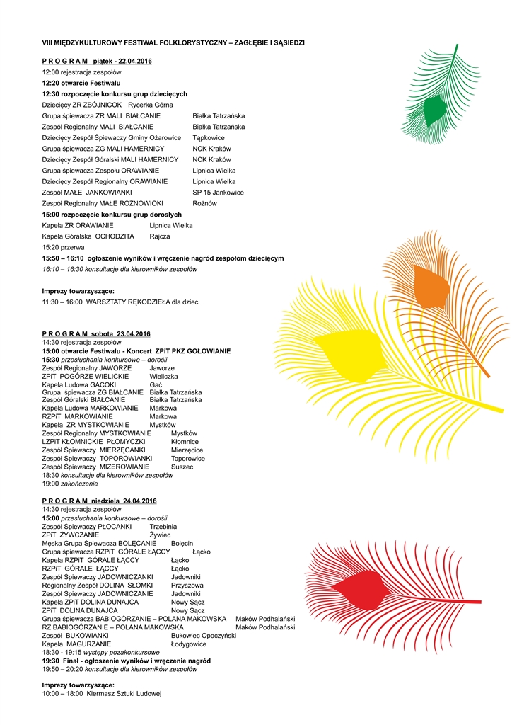 W dniach 22 – 24 kwietnia 2016 r. po raz ósmy odbędzie się Międzykulturowy Festiwal Folklorystyczny “Zagłębie i Sąsiedzi”, którego organizatorem jest Pałac Kultury Zagłębia.