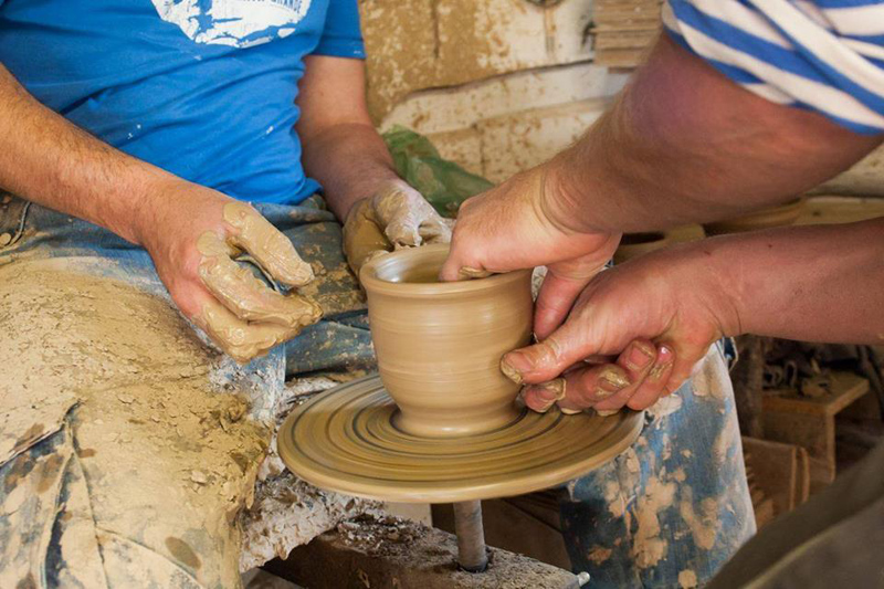 Przez cały 2016 r. w pracowni Pawła Piechowskiego, pod jego czujnym nadzorem, trzy osoby: Paweł Olszewski, Oktawiusz Stępień i Tomasz Stefańczuk, uczyły się wydobywania i obróbki gliny, toczenia na kole garncarskim, zdobienia naczyń oraz ich wypalania w tradycyjnym piecu opalanym drewnem.