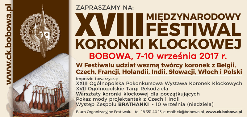 W Bobowej w dniach 7-10 września organizowany będzie XVIII Międzynarodowy Festiwal Koronki. Bobowa po raz kolejny stanie się prawdziwą stolicą koronki klockowej! Jak co roku w małym miasteczku gromadzą się licznie koronczarki z całej Europy, a nawet i świata.