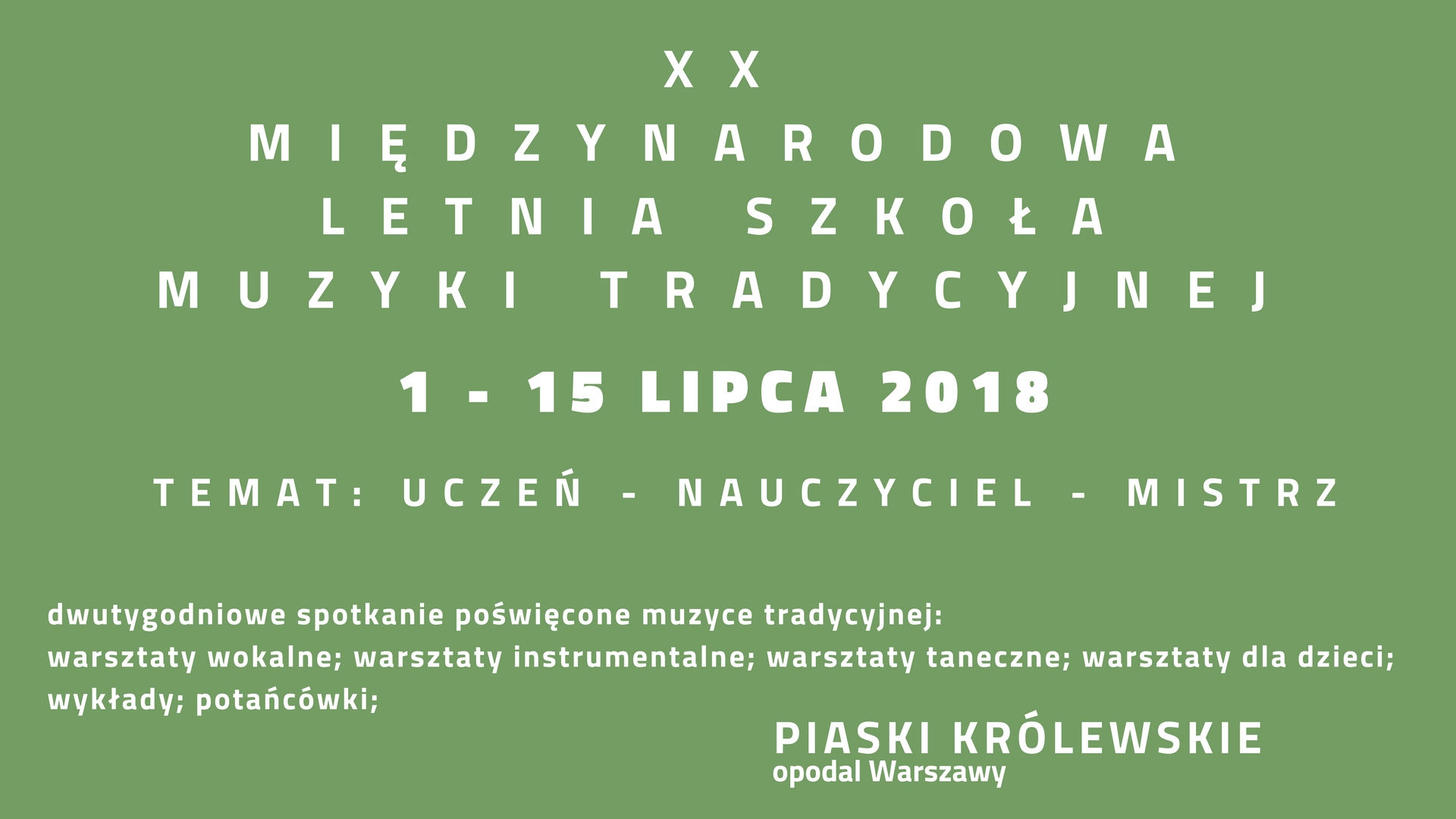 XX Letnia Szkoła Muzyki Tradycyjnej 2018